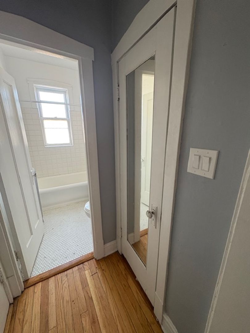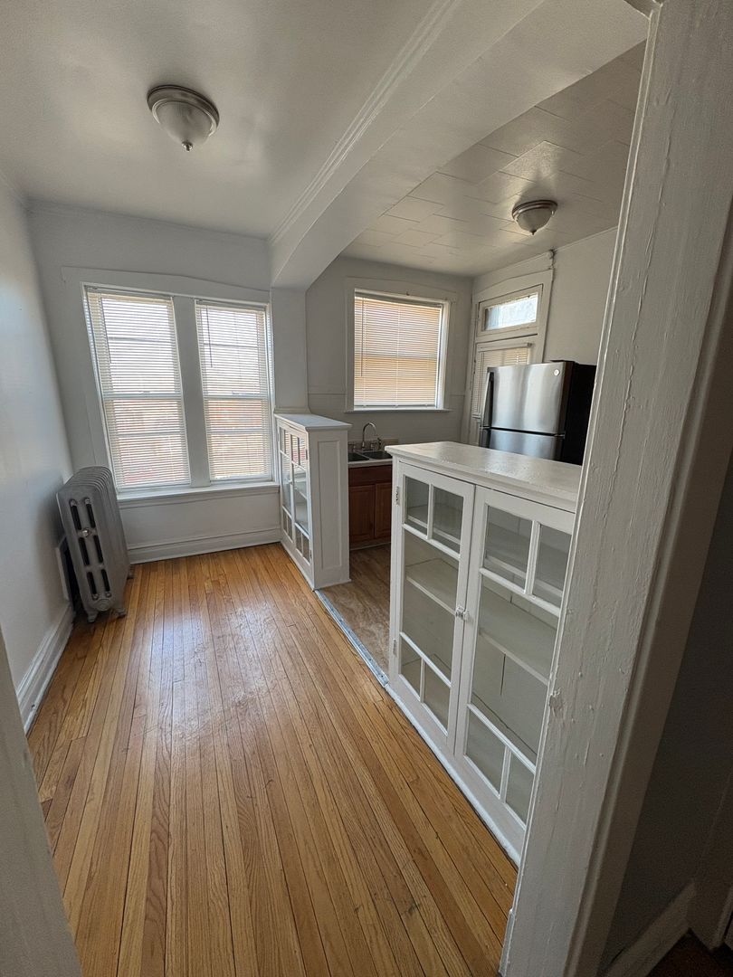 This vintage studio features hardwood floors throughout, abundant natural light, and a spacious walk-in closet. The kitchen offers ample room for a table and chairs and includes stainless steel appliances. Ideally located near the Blue Line in the heart of downtown South Oak Park, the property is just steps from shops, restaurants, and everyday conveniences.